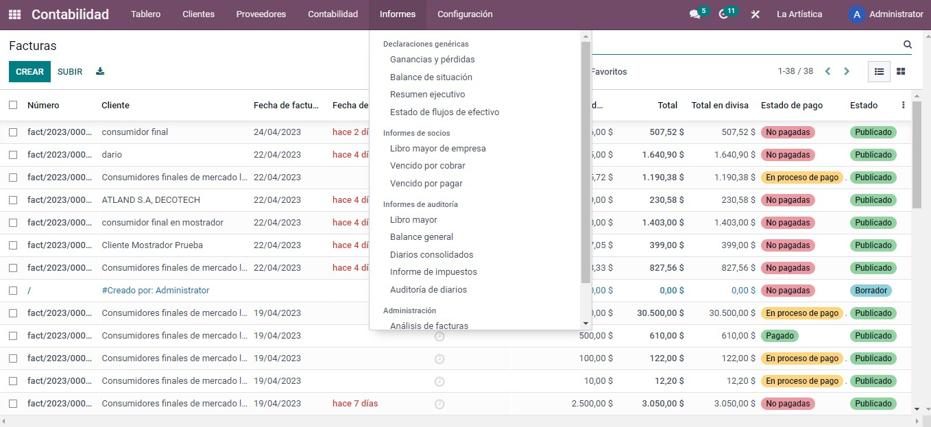 Cuentas por cobrar: Este informe muestra el saldo pendiente de las facturas pendientes de cobro de los clientes de una empresa.